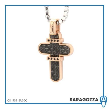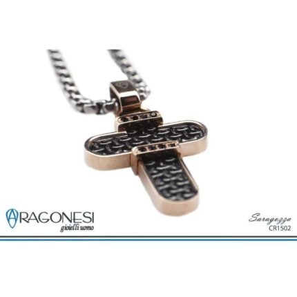 Collana Acciaio Uomo Croce Rosรจ PVE Nero Saragozza Aragonesi CR1502