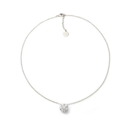 Collana in argento rodiato con fiore pendente in pavé di pietre zirconia cubica bianca. Chiusura con moschettone ed anelli di allungamento, misura 40-44,00 cm. Con gli accessori giusti puoi esprimere chi sei e con questa scintillante collana trasmetterai femminilità e raffinatezza. Indossala insieme ai gioielli coordinati, scorpri la collezione Luxury in argento e zirconi e fai brillare il tuo stile.